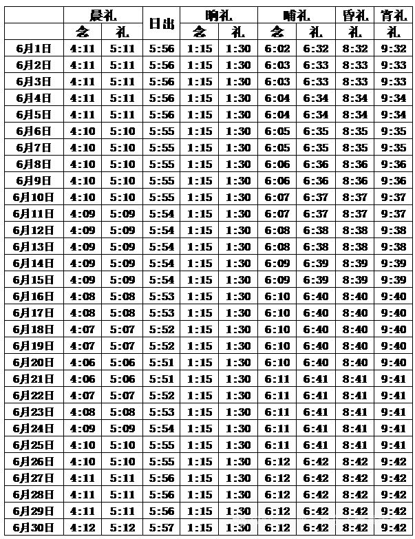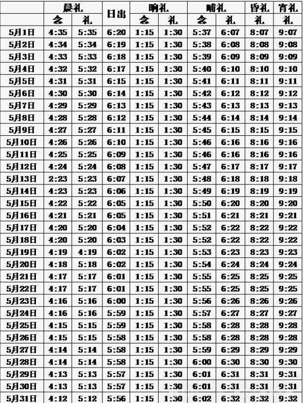 4. 更新时间表 - "手动更新":如果使用纸质或电子表格,手动更新每天的礼拜时间。 - "自动更新":如果使用在线日历或应用程序,可以通过编程或手动输入来更新时间。