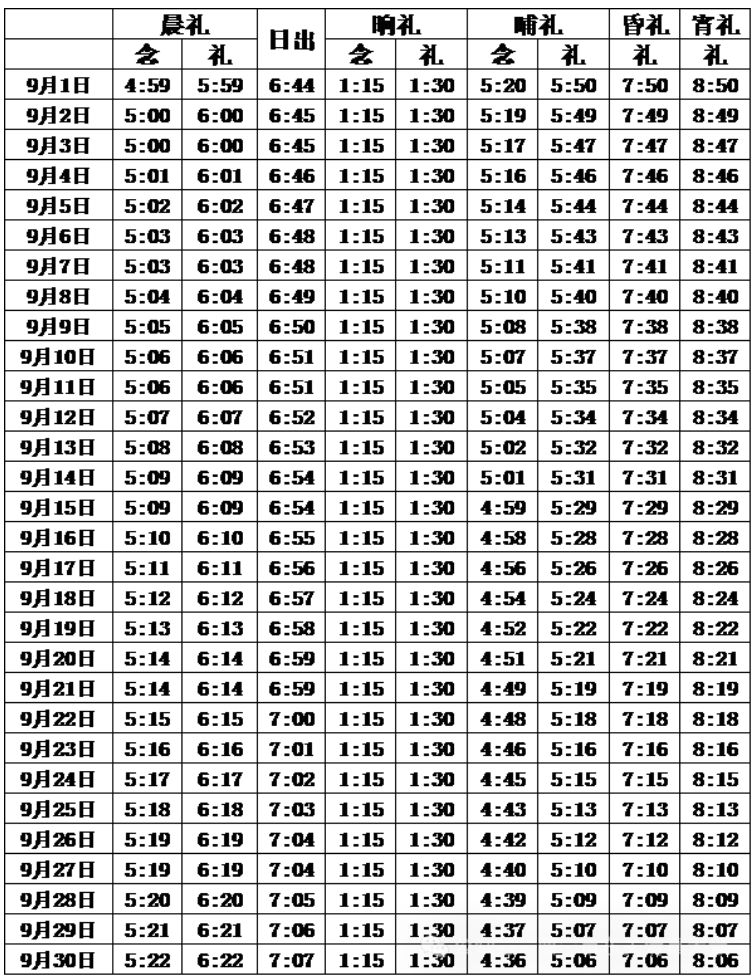 2025西宁9月五时拜功时间表