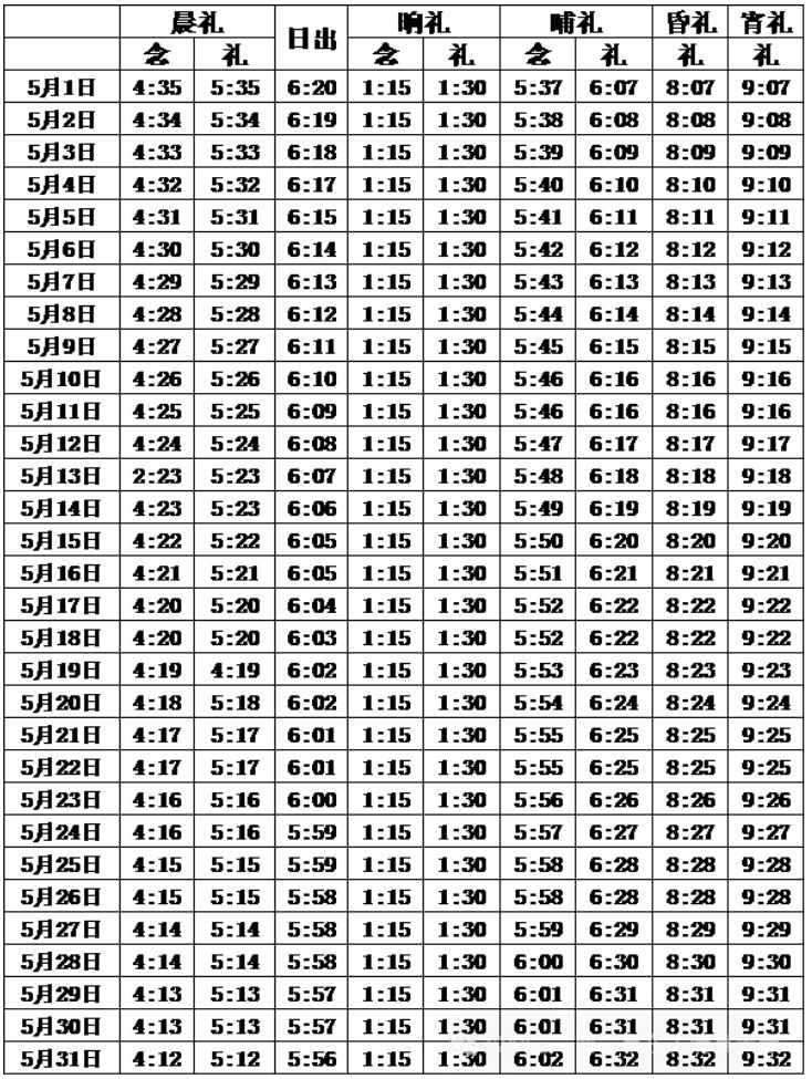 2025西宁5月五时拜功时间表