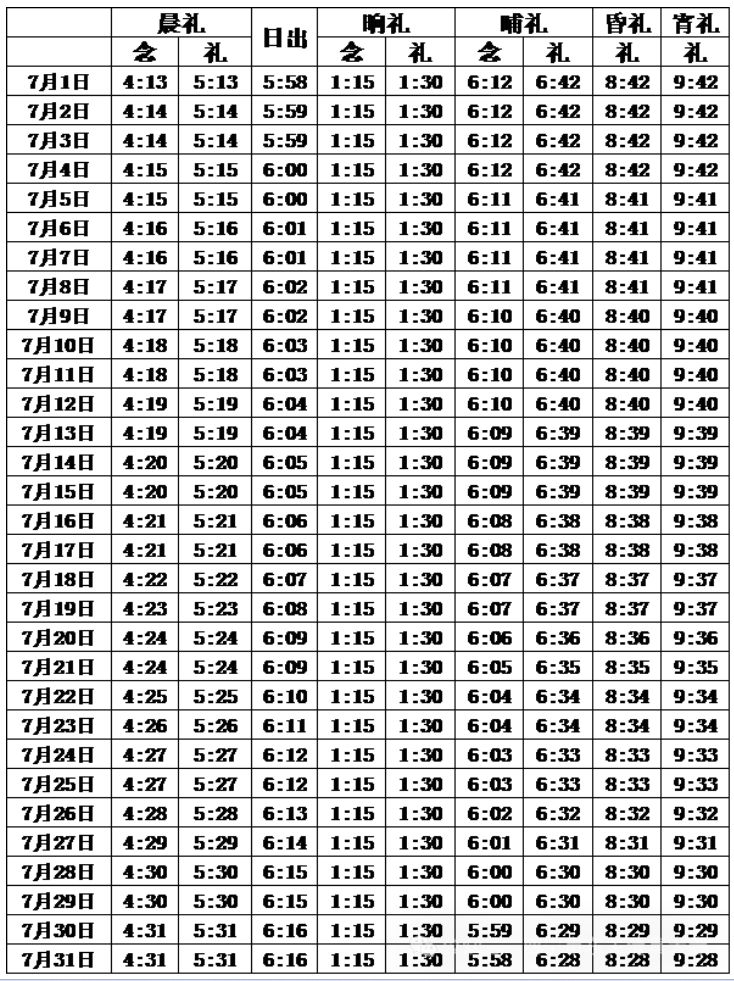 2025西宁7月五时拜功时间表