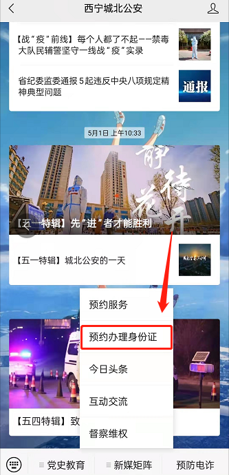 点击 “新媒矩阵”->选择“预约办理身份证”进入系统