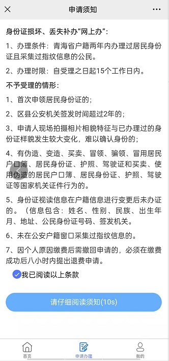 首次申请身份证必须前往线下办理,签发时间超过2年的无法在线上办理,未采集指纹的不能在线上办理,具体无法办理情形请阅读申请须知。